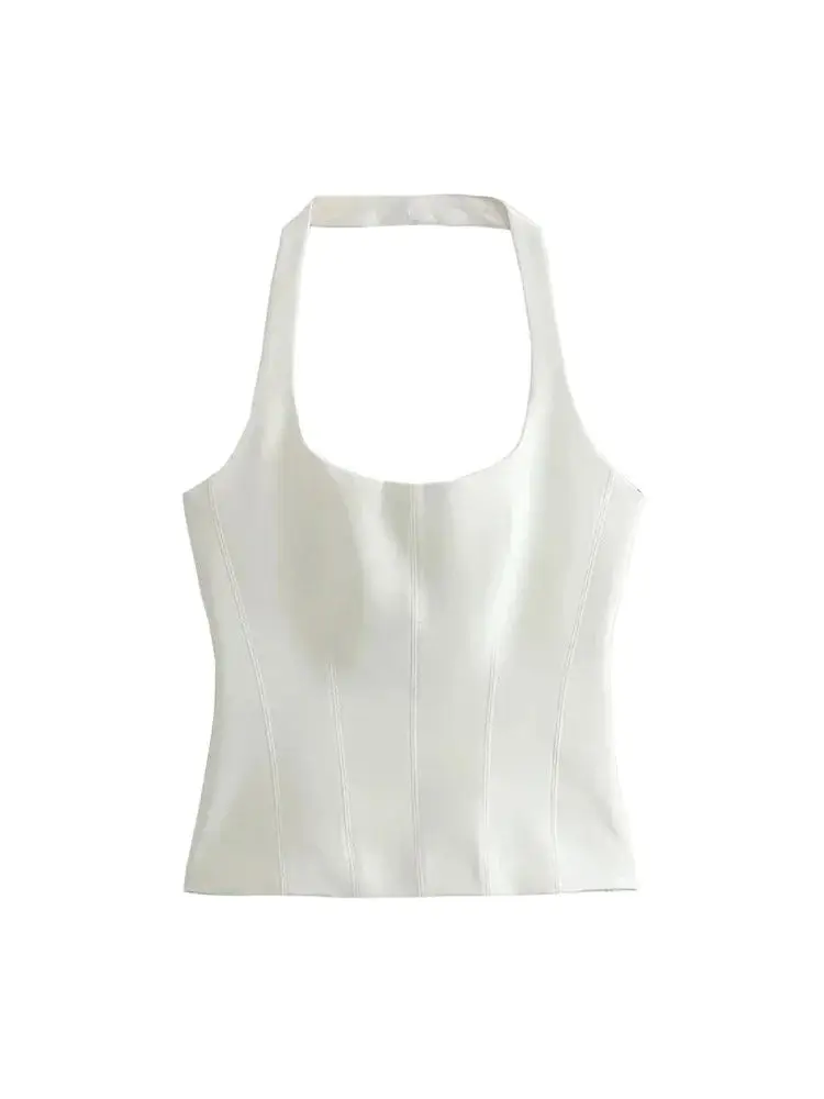 Women’s Backless Halter Fitted Tank Tops, Female Camis, O Neck, Side Zipper, Sexy Fashion