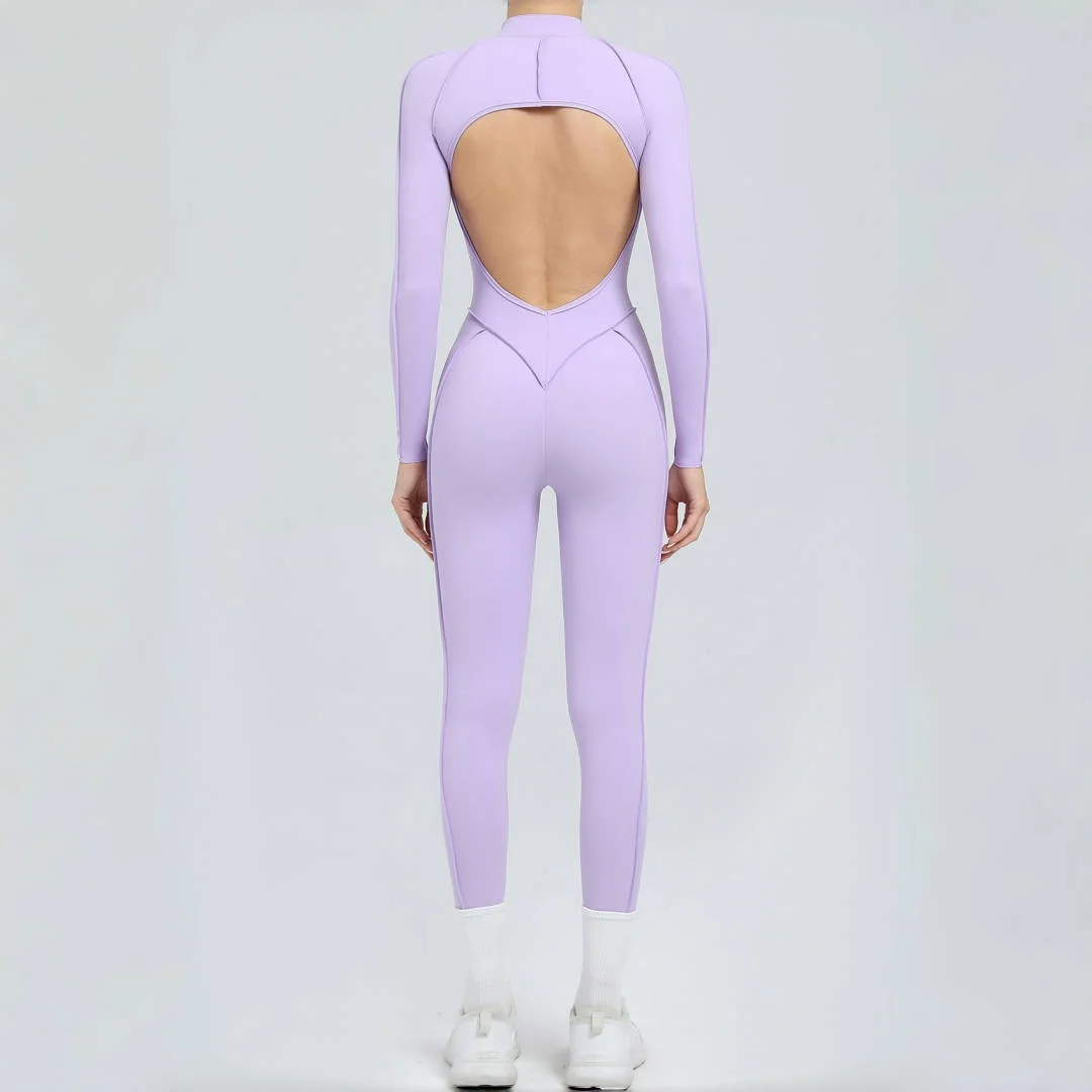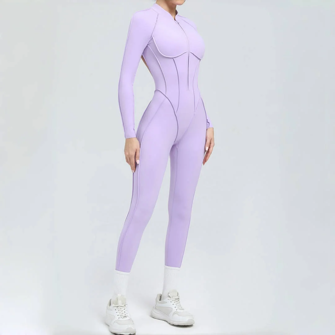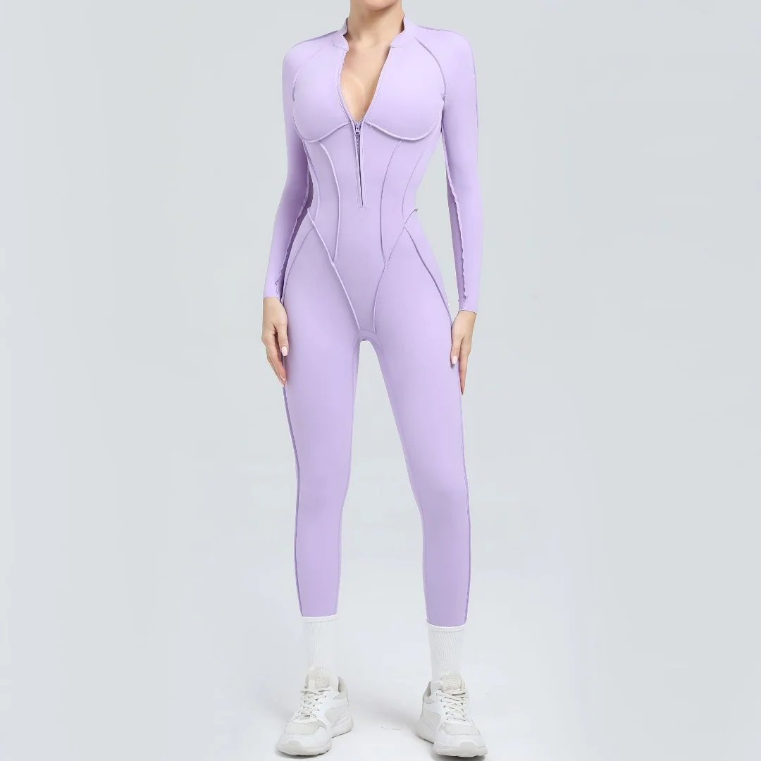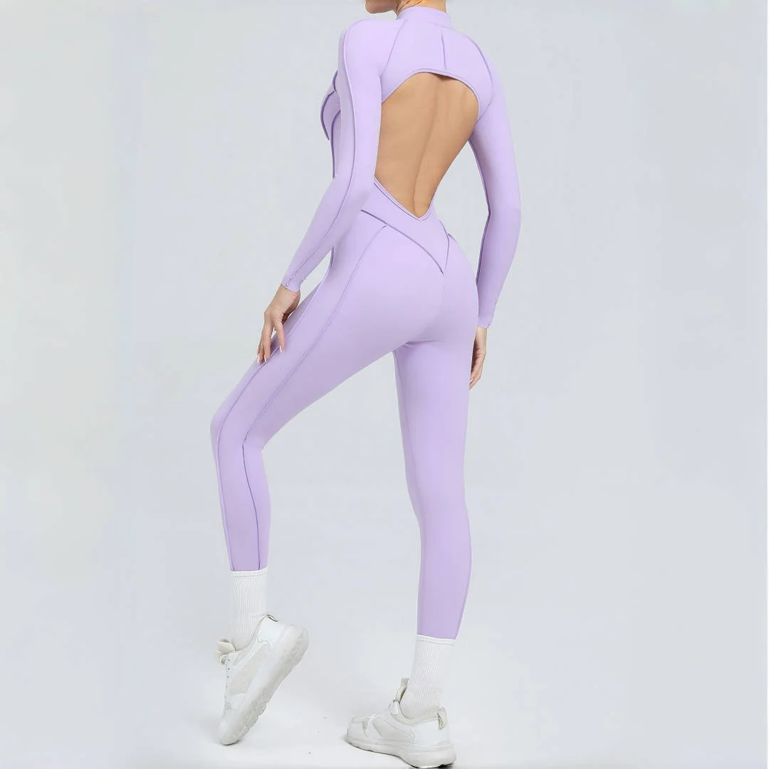 Women’s Backless Hip Lift Yoga Jumpsuit Sports Fitness Removable Padding Zipper Leggings One-Piece Running Workout Gym Jumpsuit