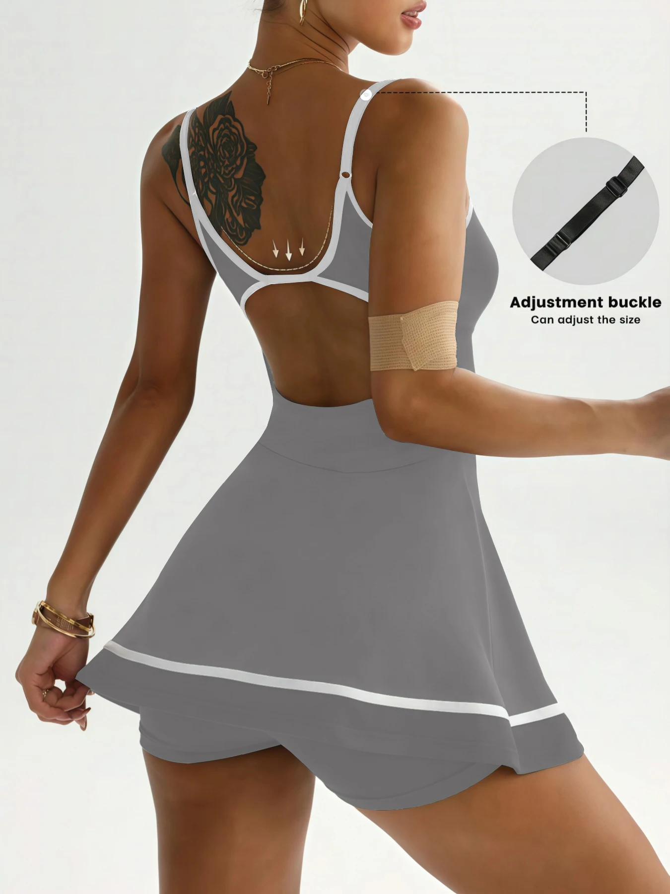 Women’s color blocked camisole dress hanging sleeveless thickened tennis sportswear slim fit gym sportswear short skirt