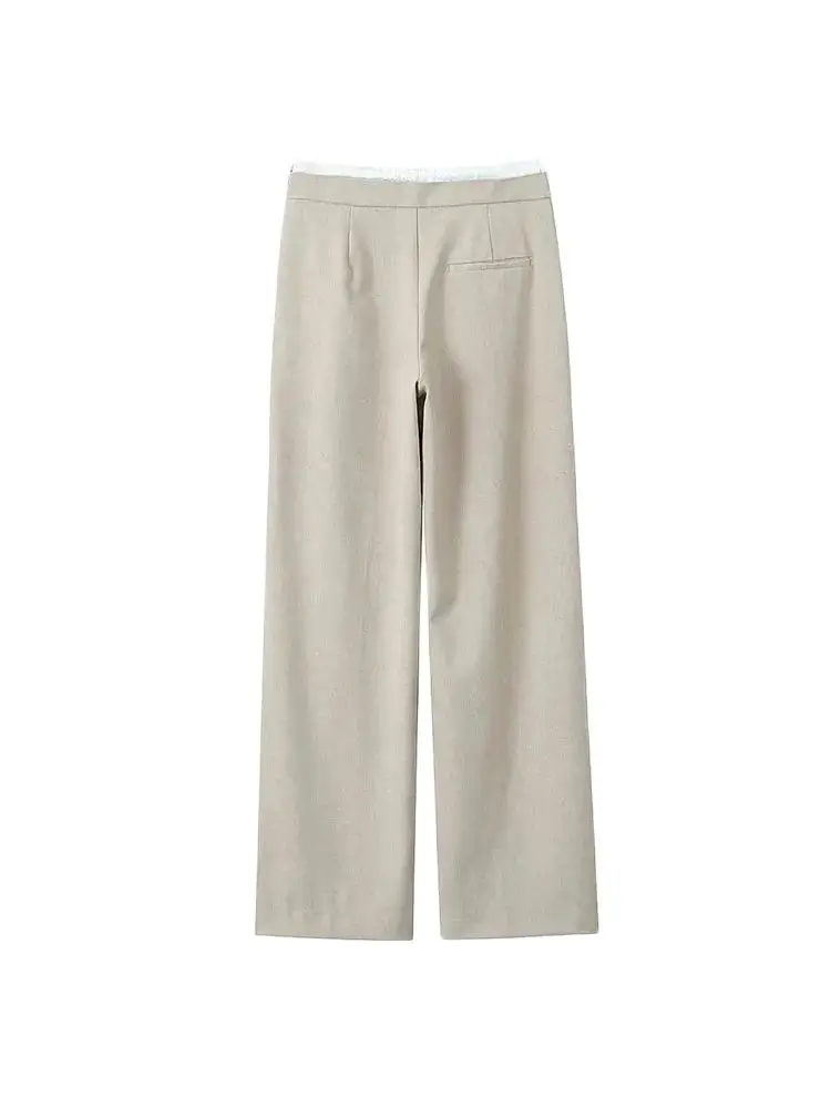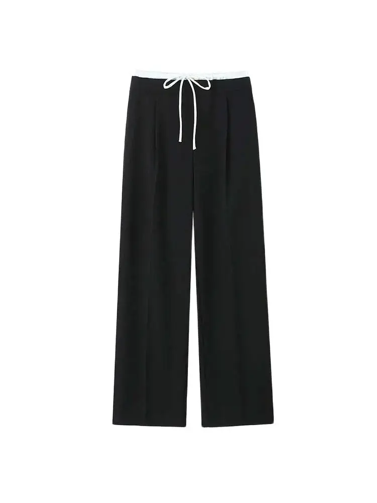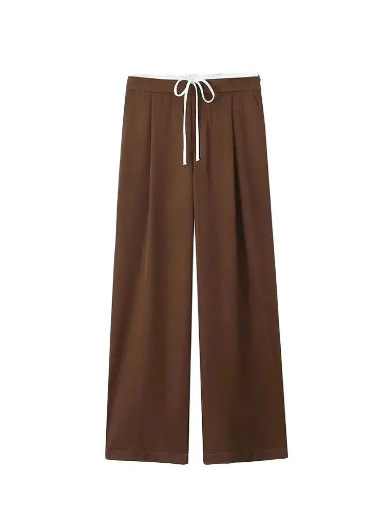 Women’s Double Waistband Wide Leg Pants, High Elastic Waist With Drawstring, Side Pockets, Female Trousers, Chic Fashion