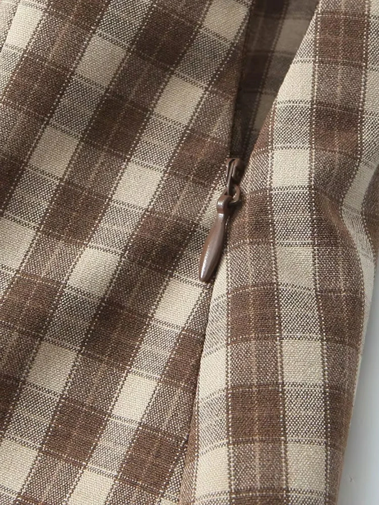 Women’s Fashion Fitted Checkered Waistcoat Top And Mid-Waist Side-Zip Pleated Skort Two-Piece Set for Females Mujer