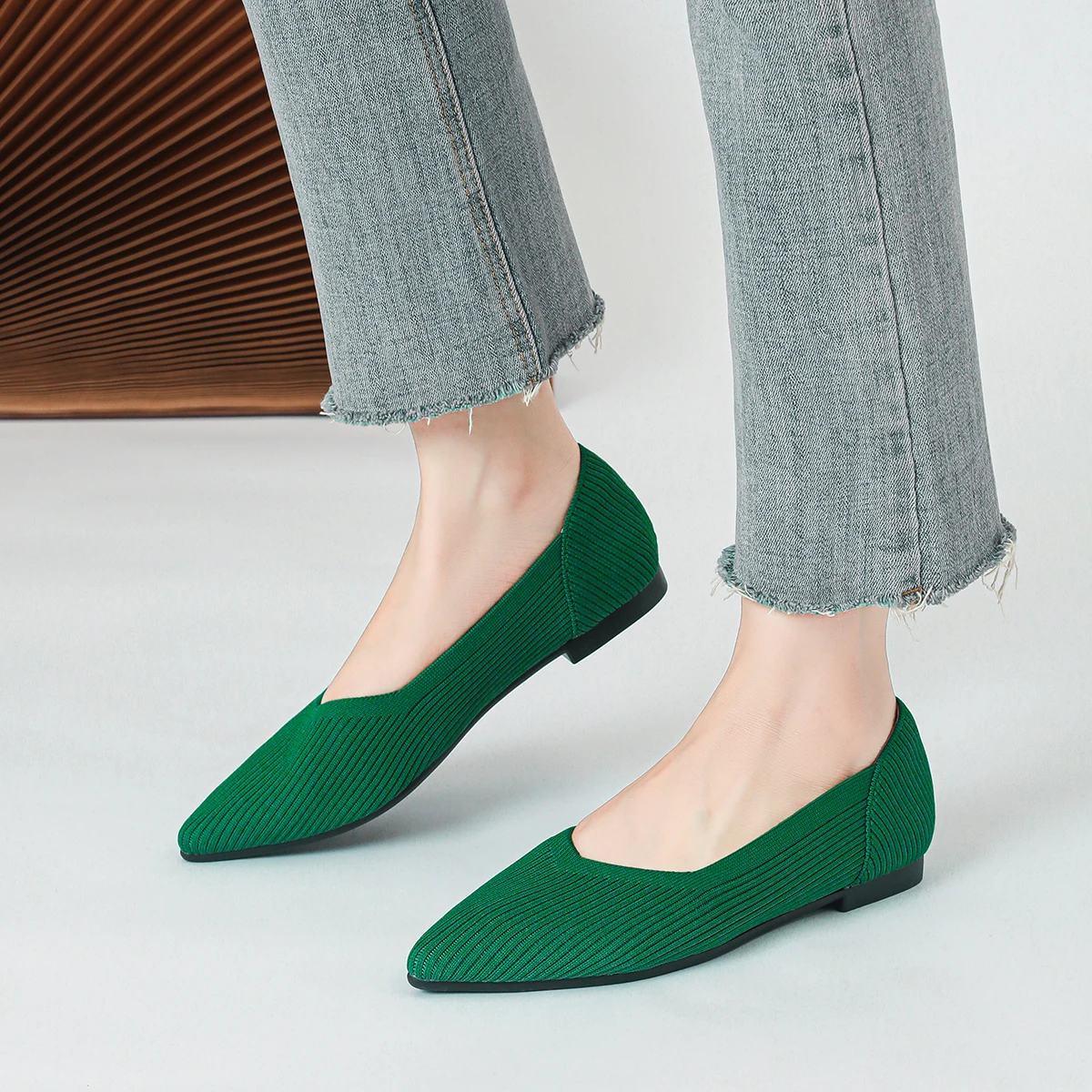 Women’s flat shoes with pointed soft knitted sole breathable and comfortable shoes Spring and Autumn 2024 new model
