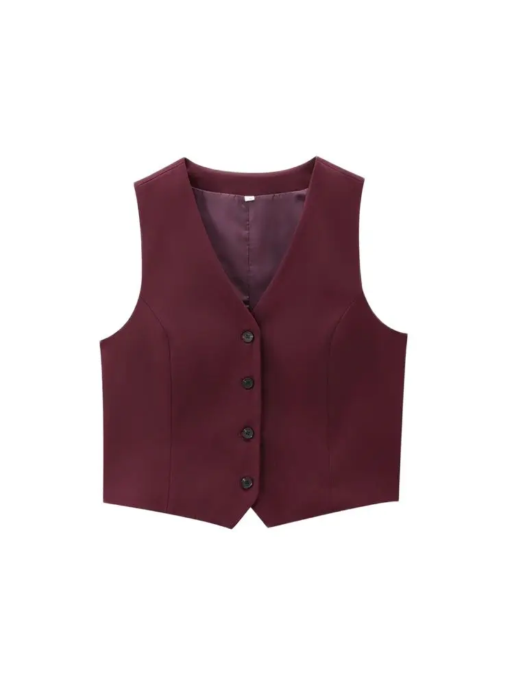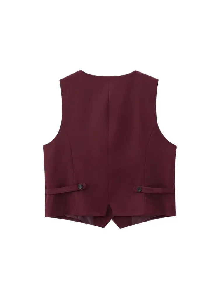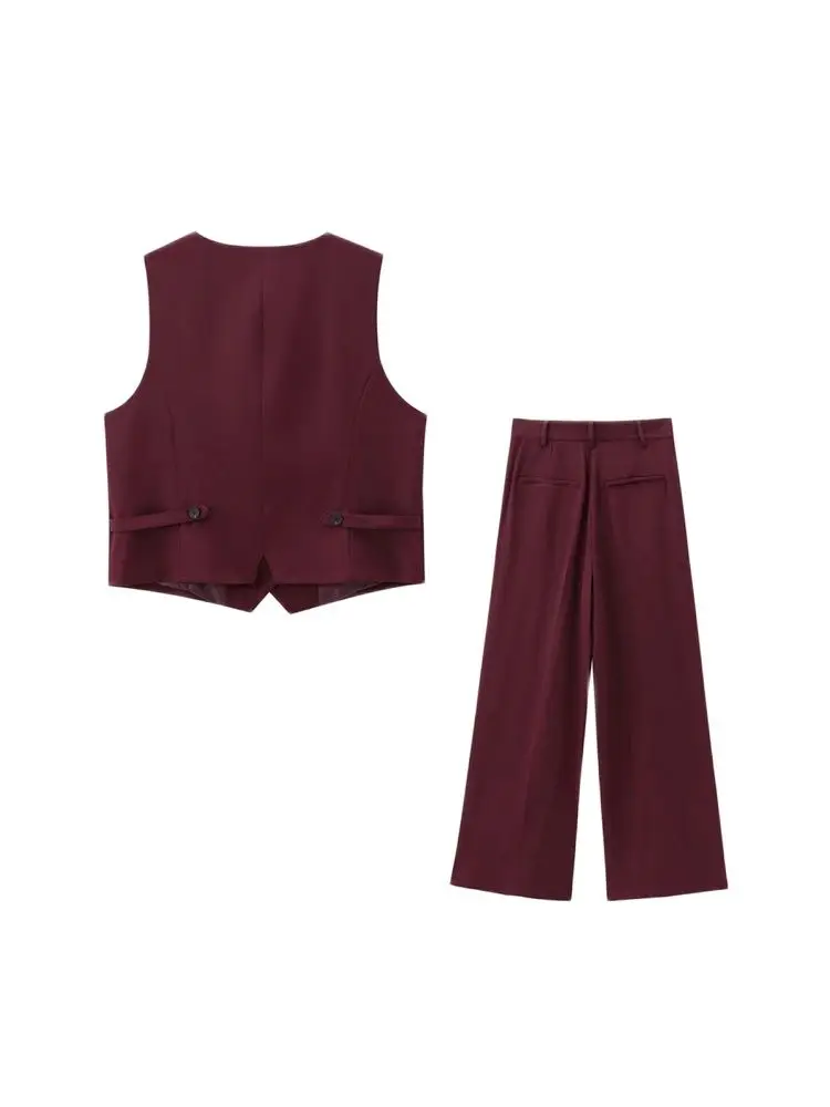 Women’s Front Button Fitted Waistcoat and High Waist Pleated Wide Leg Pants, Female Two Piece Sets, Fashion