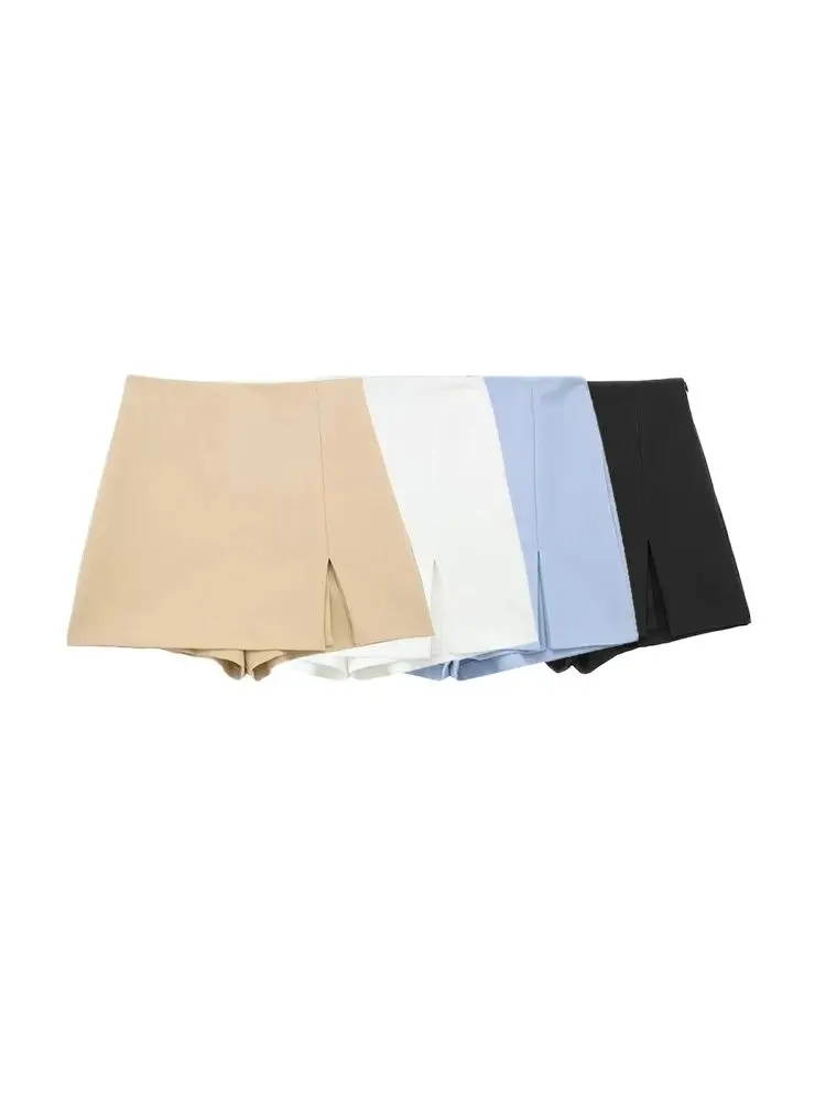 Women’s Front Slit Shorts Skirts With Side Zipper, High Waist, Female Skort, Chic Fashion