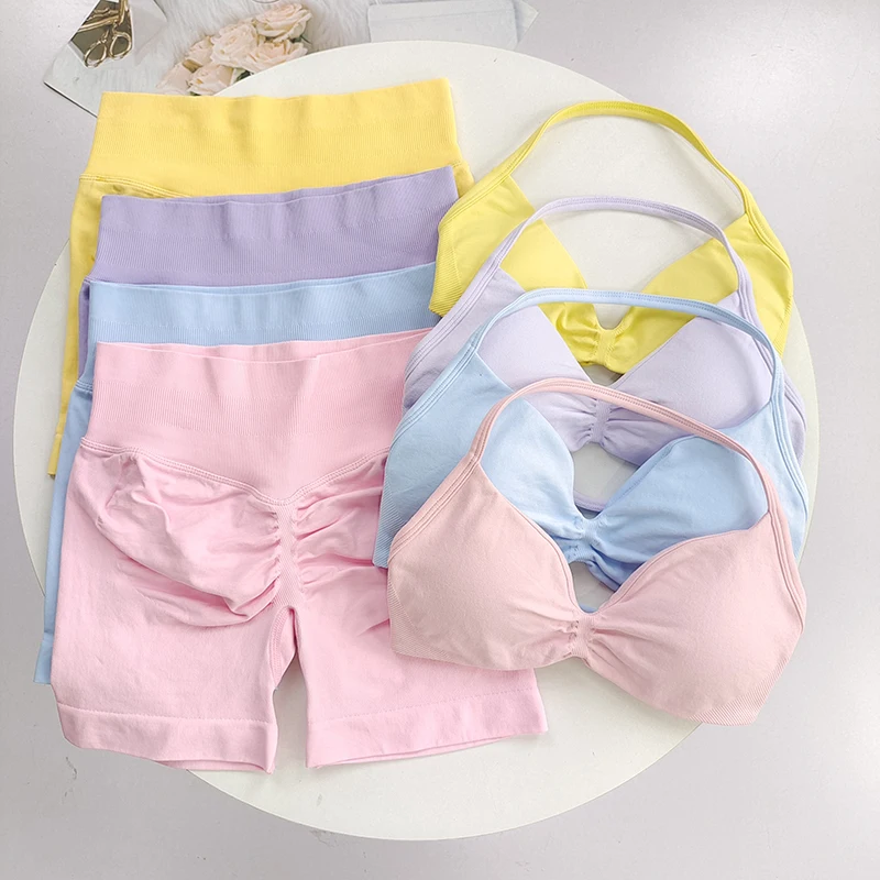 Women’s Halter Neck Sports Bra & High Waist Leggings Set – Moisture-Wicking, 4-Way Stretch, Removable Pads, Complete Workout Out