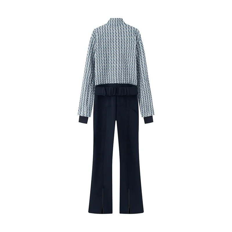 Women’s Jumpsuit 2026 Spring New Style – Patchwork Long-Sleeve Belted Warm Ski Cotton Jumpsuit Trendy and Fashionable