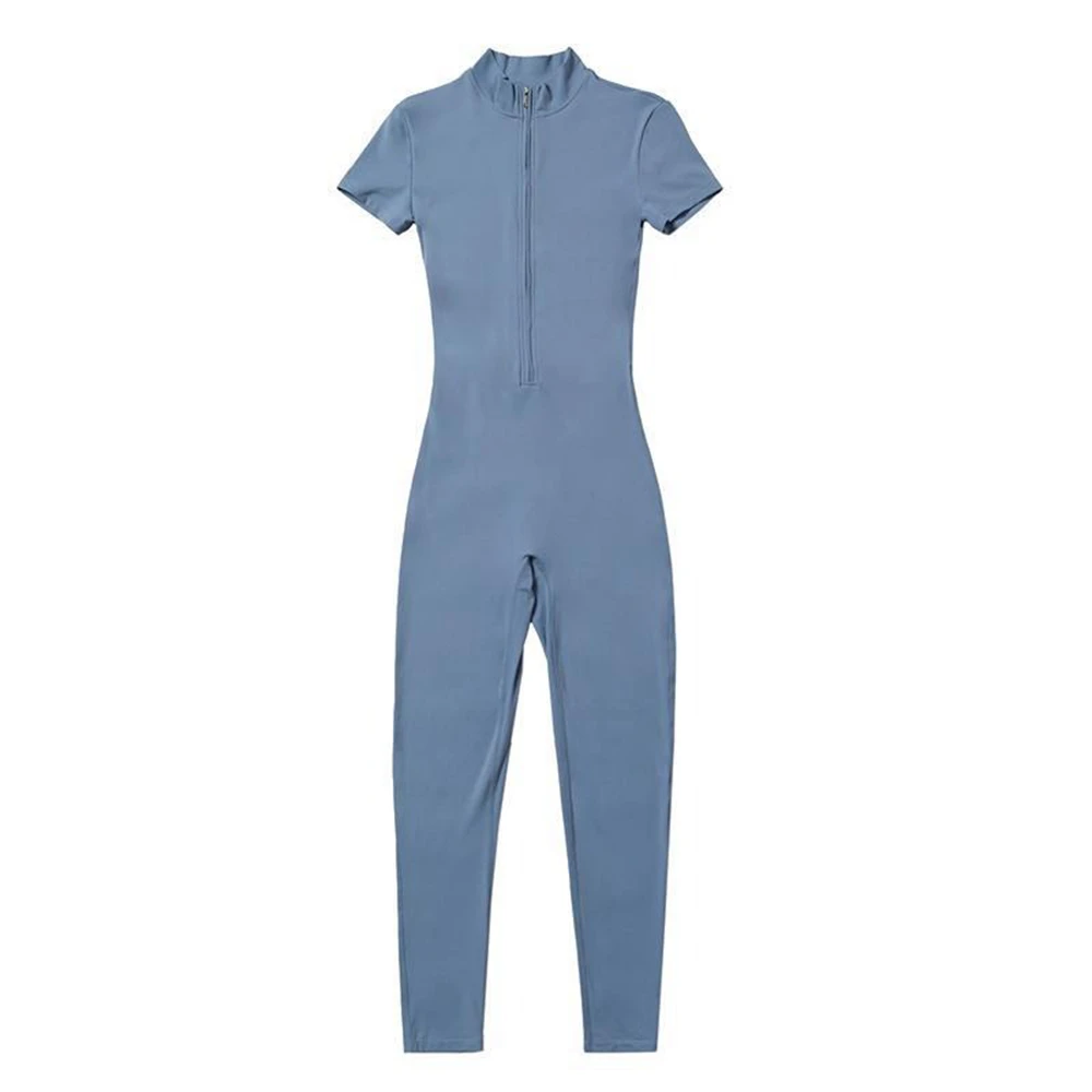 Womens Jumpsuits Short Sleeve Yoga Thin Slim Fit Stretch One Piece Romper Sexy Fitness Female Sportwears Tight Zipper Ladies