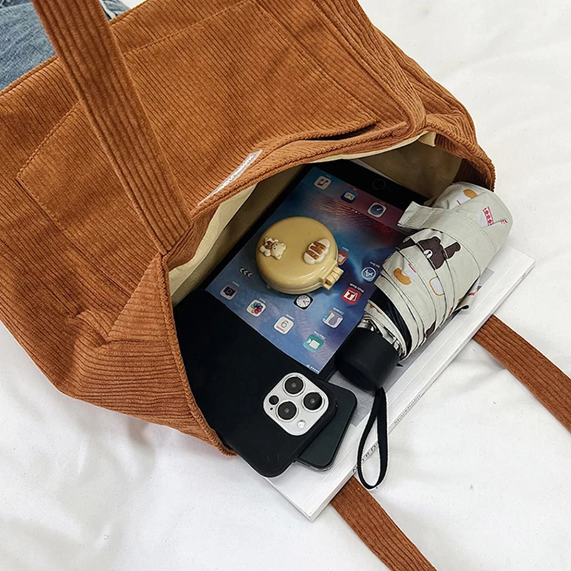 Women’s Large Capacity Corduroy Shoulder Bag Casual Handbag Solid Color Female Shopping Bag