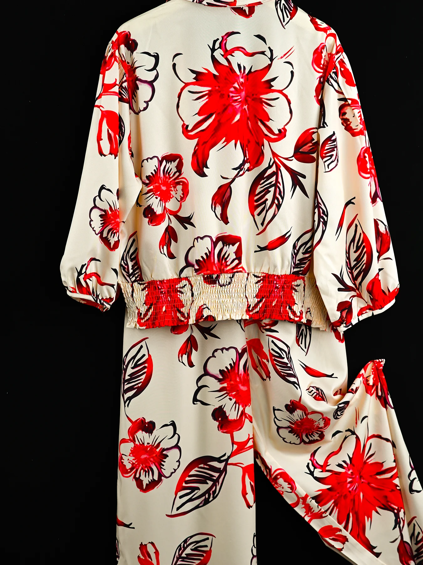 Women’s Long Bottom Cross-Neck Suit, Bright Fashion Flower Print Pattern, Waist-cinching Short Top, Plus Size, Spring & Summer