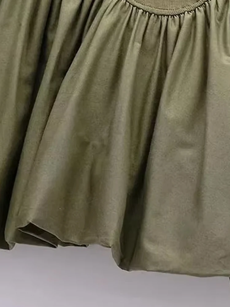 Women’s Patchwork Ribbed Poplin Puff Mini Dress, Straight Neck, Thin Straps, Female Dresses, Sexy Fashion