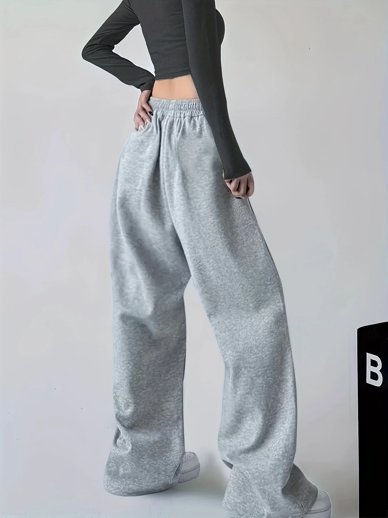 Women’s Plus-size Street Style Casual Sweatpants with Personality Print Autumn and Winter Fleece Loose Fit Streetwear Oversized