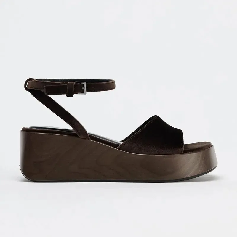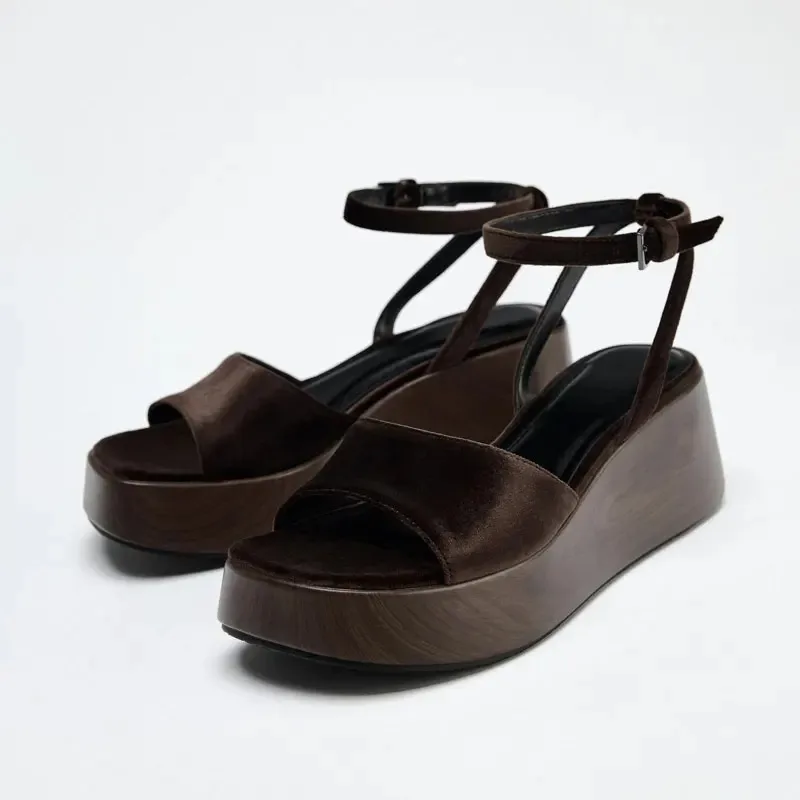 Women’s Retro Velvet Wedge Sandals Platform Heels, Open Toe Ankle Strap Clogs Comfortable for Beach Resort Vacation Party