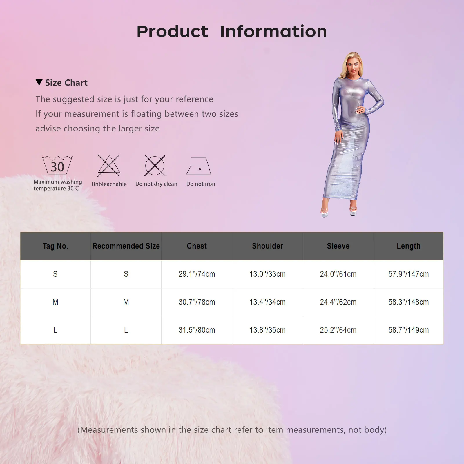 Womens Shiny Metallic Sheer Long Dress See Through Long Sleeve Bodycon Maxi Dress Cover Ups Rave Party Night Club Wear Underwear