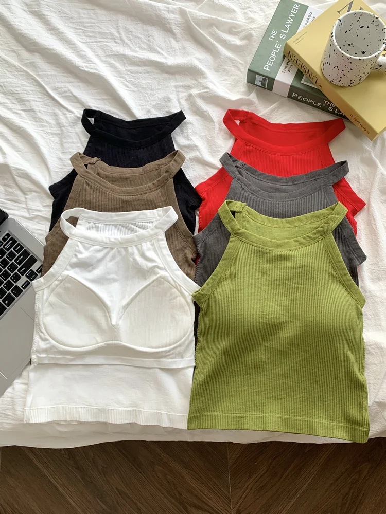 Women’s Small Strap Vest Outdoor Wear Summer Beautiful Ba Sports Yoga Hanging Ne Top with Chest Pad Matching Underwear