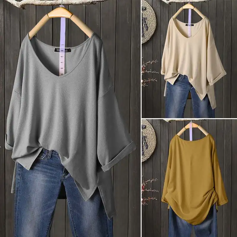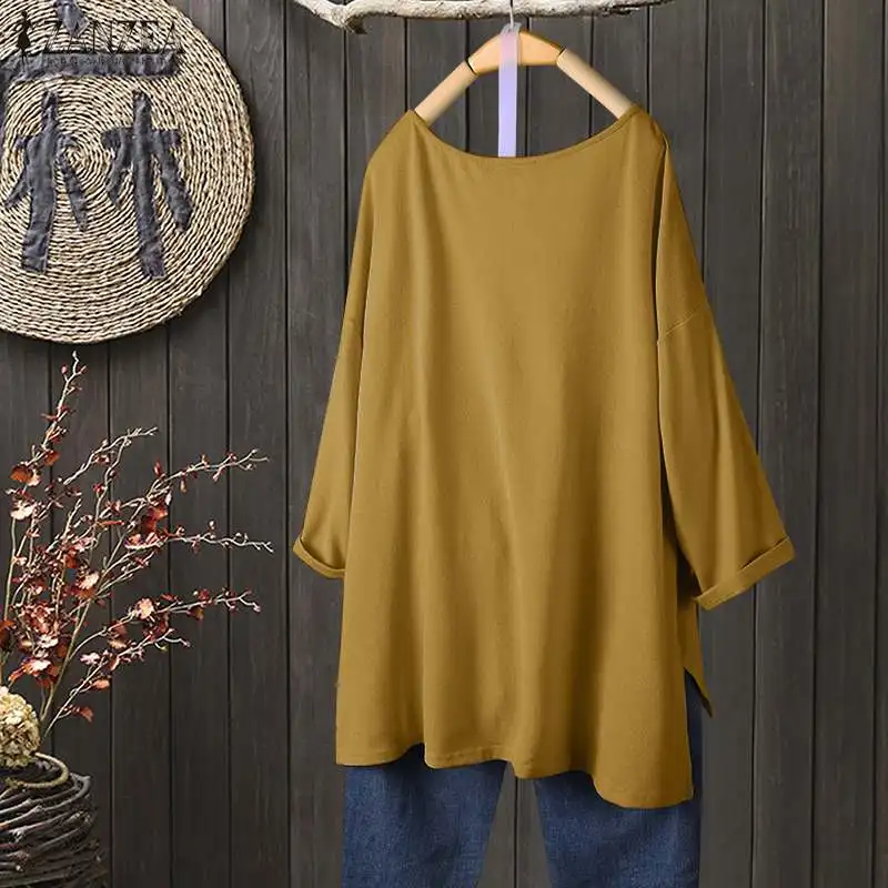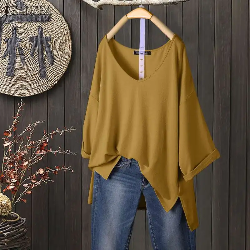 Women’s Solid Blouse 2023 ZANZEA Fashion Casual Summer Autumn Tops 3/4 Sleeve Shirts Female V Neck Split Blusas Tunic