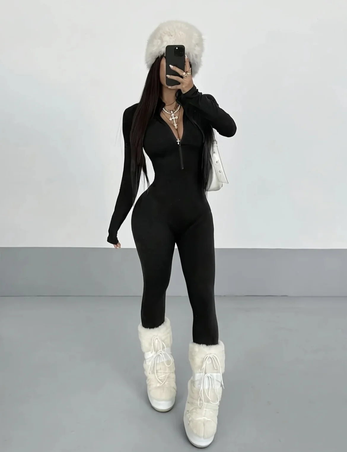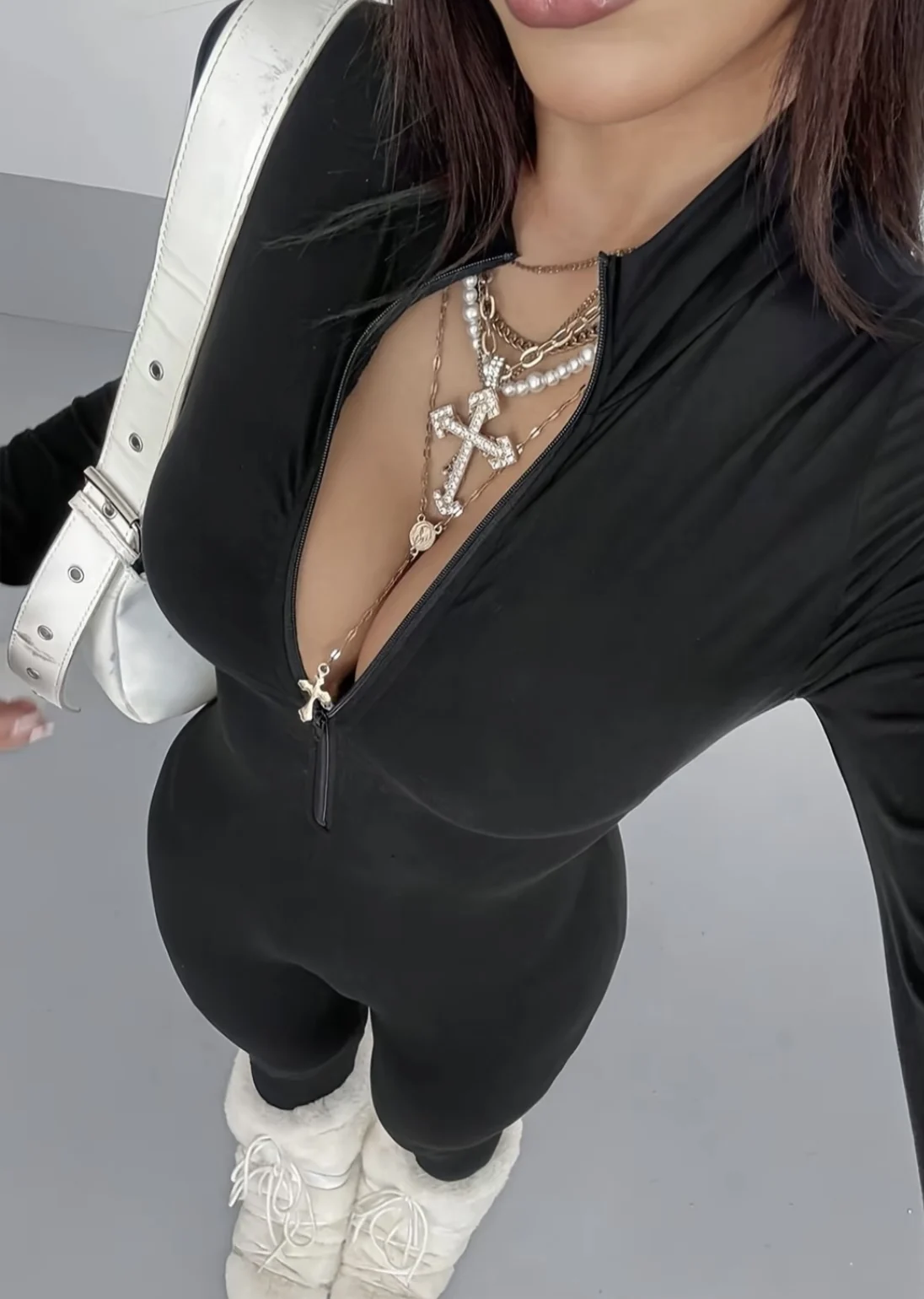 Women’s stand-up collar zippered bodysuit autumn and winter