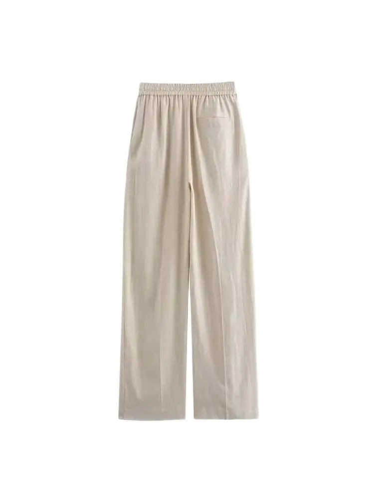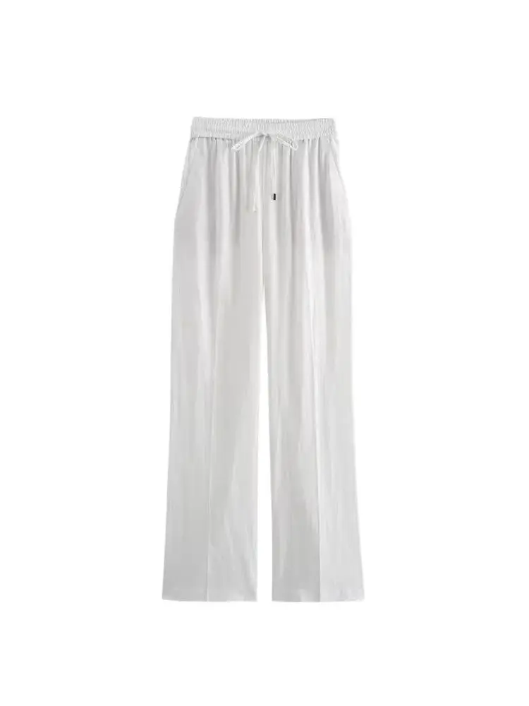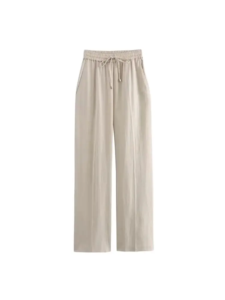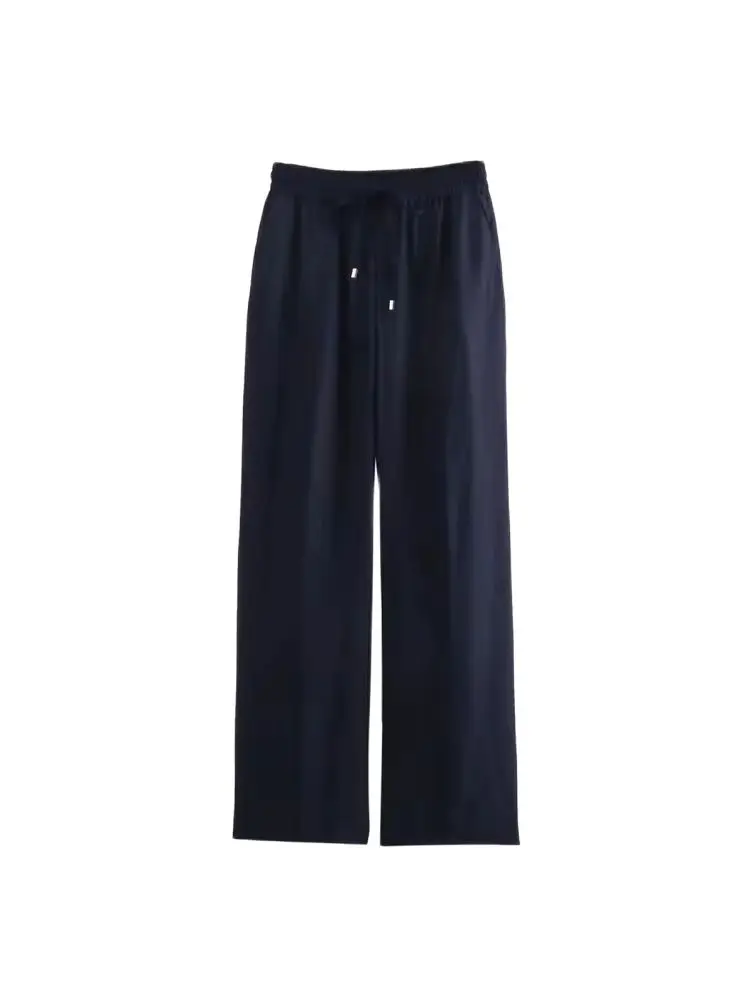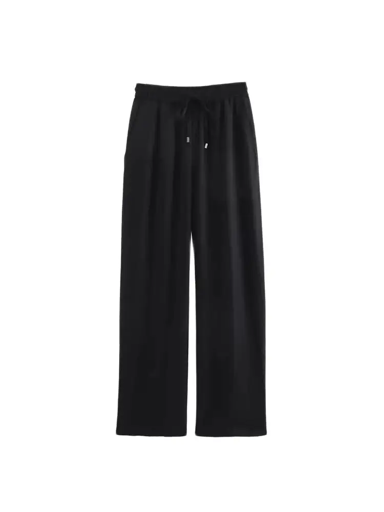 Women’s Straight Pants with Front Pockets, High Elastic Waist, Drawstrings, Female Trousers, Chic Fashion