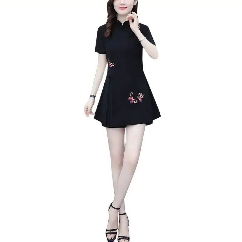Women’s Suit Chinese Style Clothes Two Piece Sets 2025 Summer New Crop Top And Shorts Retro Cheongsam Outfits Matching For Women