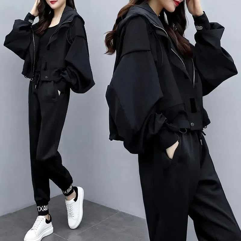 Women’s Tracksuit Korean Elegant Hoodie Zipper Jacket Coat Sport Pants Two Piece Suit 2026 Spring Autumn New in Matching Set