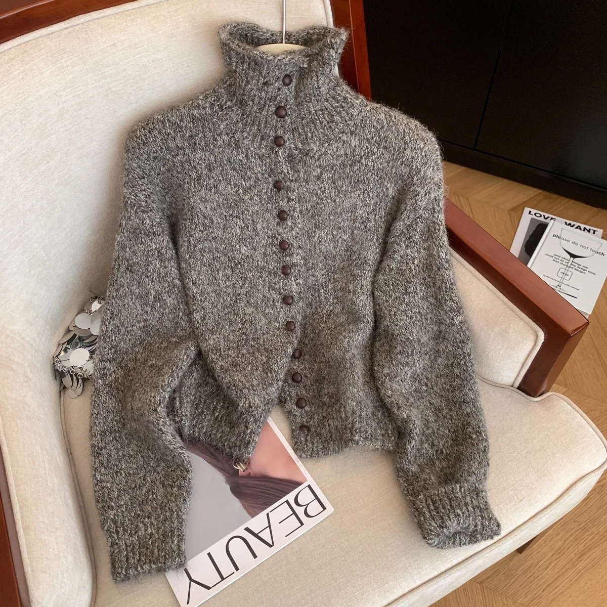 Women’s Turtleneck Cardigan Sweater Y2k Vintage 2000s Jumper Knitwear Long Sleeves Korean Soft Cozy Sweater Autumn Winter 2025