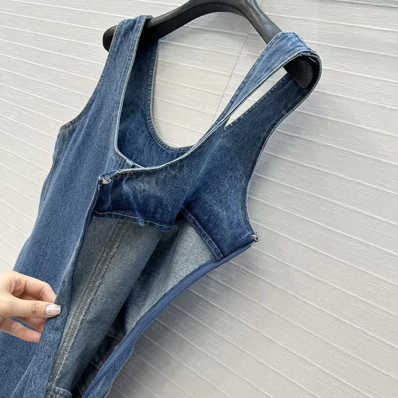Women’s Washed Denim Jumpsuit, Sleeveless Tank Jumpsuit, High-Quality Flared Pants, 2026 Spring New Arrival, Y2K Style