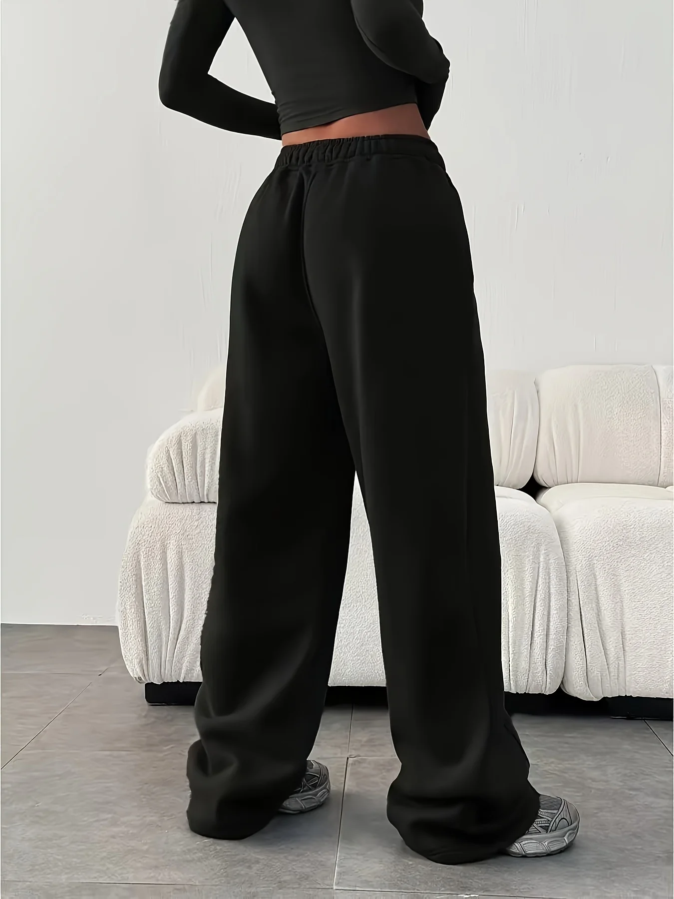 Women’s Winter Loose Wide Leg Pants Are Suitable for Casual and Sports Wear. Black Sports Pants Are Suitable for Women