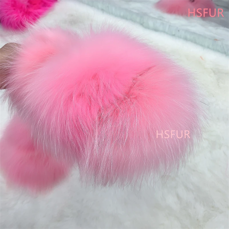 Woo Spikes Luxury Fur Slippers Women Round Toe Mongolian Fur Slides Woman Shoes Women Flat Half Slippers