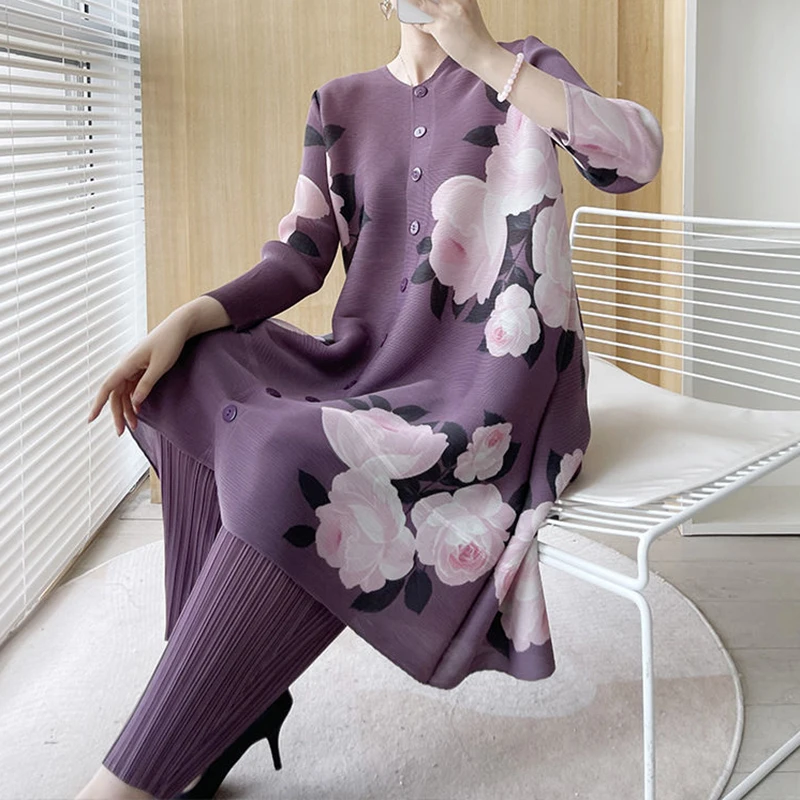 1 review for Wrinkle Print Set 2024 Autumn New Fashionable 3/4 Sleeves Top coat women trench coat for women
