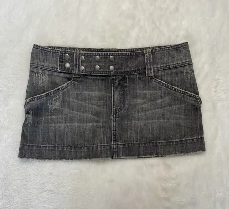 Y2K Adjustable Waist Mini Skirt Harajuku Hot Girl Solid Color Retro Gray Denim Skirt Women Gothic Slim Hip Low Waist Short Skirt