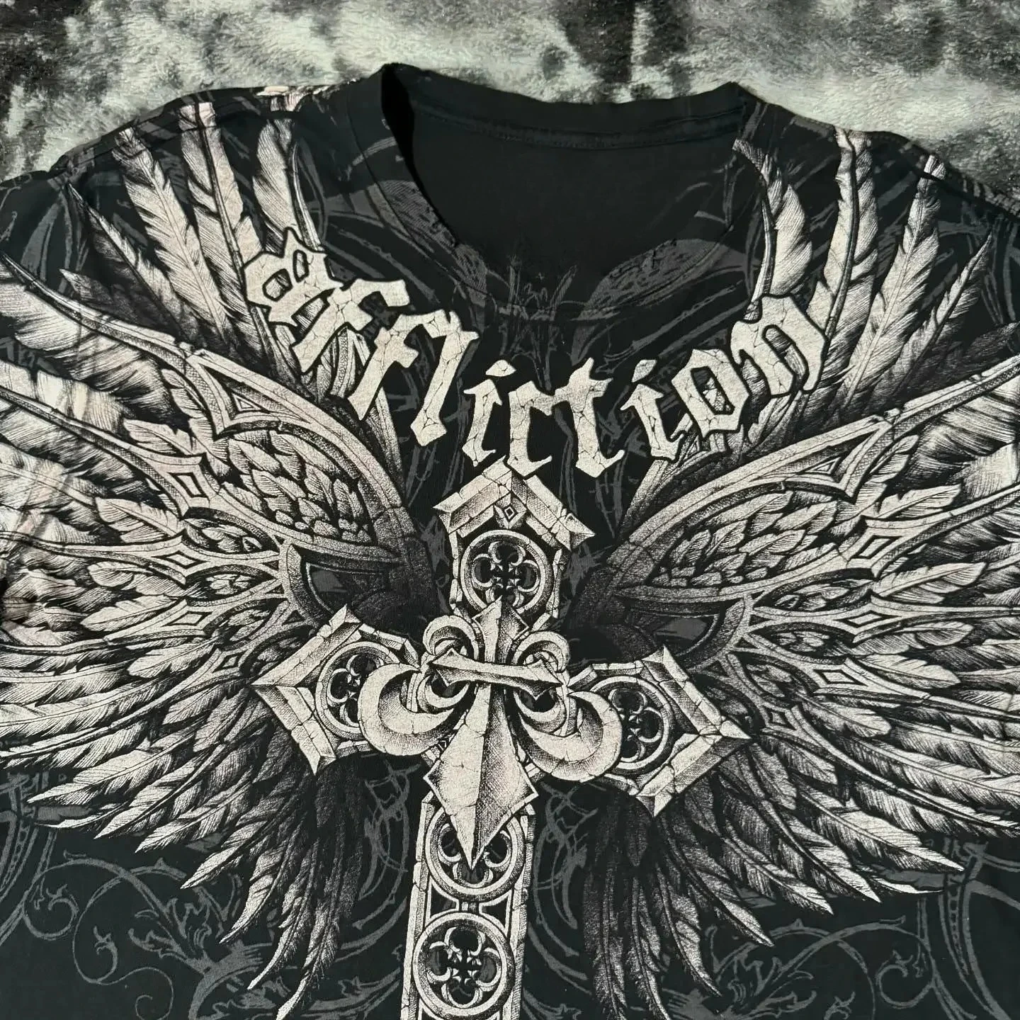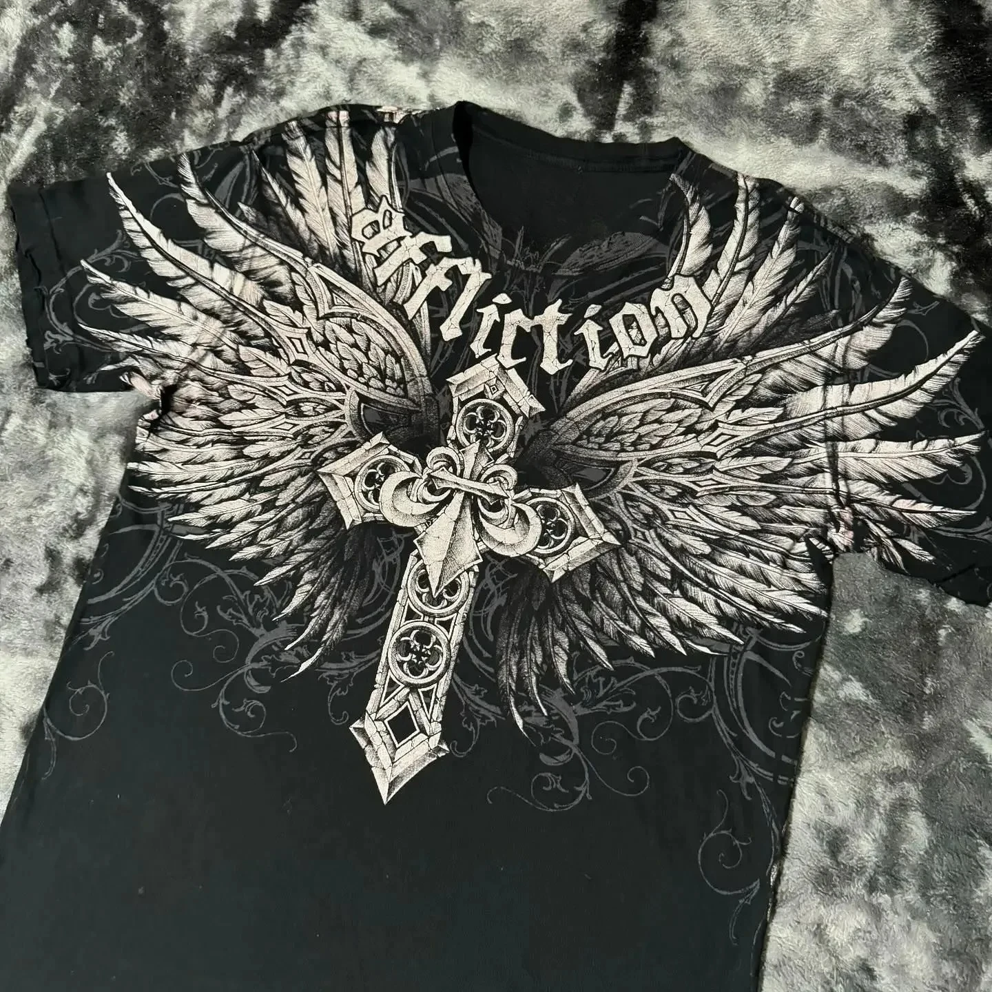 Y2K Affliction T Shirt Vintage Clothing Punk Hip Hop Graphic Print Oversized T shirt Women Round Neck Cotton Short Sleeve Tops