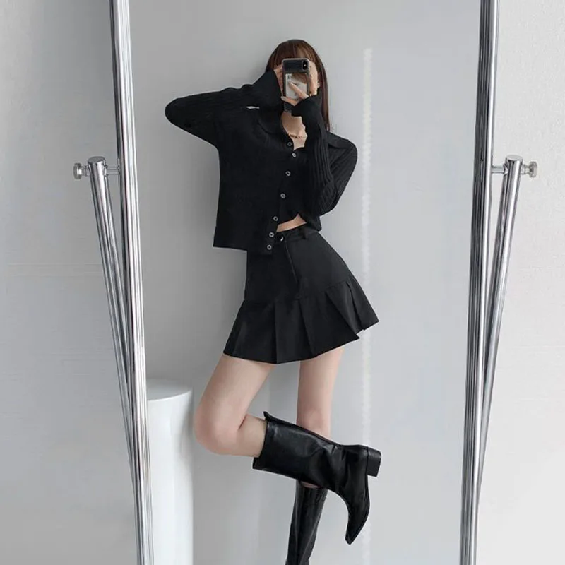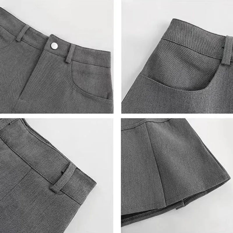 Y2K Vintage High Waist Pleated Skirt Women College Style Uniforms Safety Pants Mini Skirts Woman Korean Street Slim A-Line Skirt
