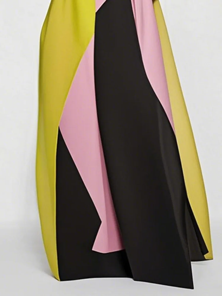Yeezzi 2025 New Summer Vacation A-line Dress For Women Fashion Color-Block Pleated O-Neck Casual Weekend Going Out Maxi Dresses