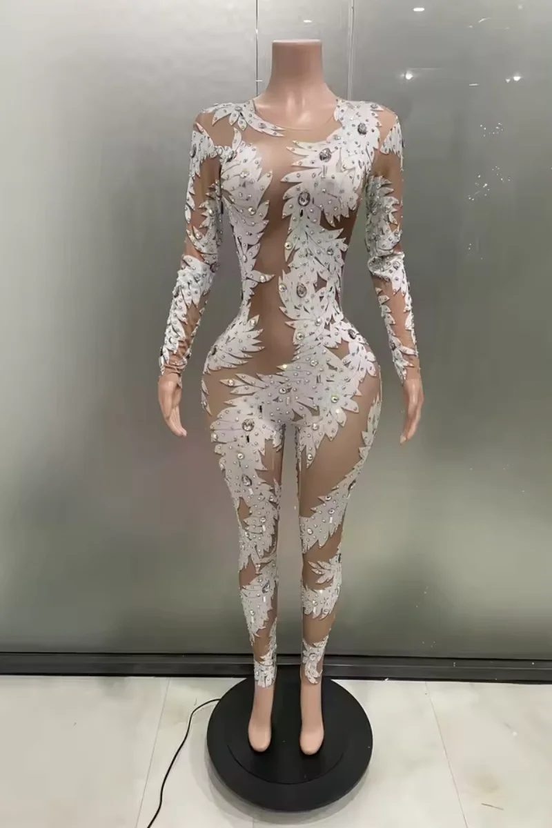 Yiling shiny crystal sequins sexy body suit for night club party club performance costume stage wear