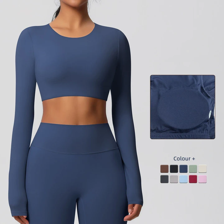 Yoga Shirts For Women Long Sleeve With Padded Fitness Running Gym Clothes Workout Dry Fit Breathable High Elastic Sports Top