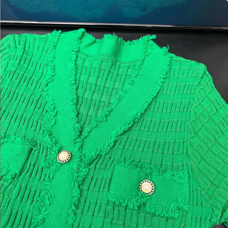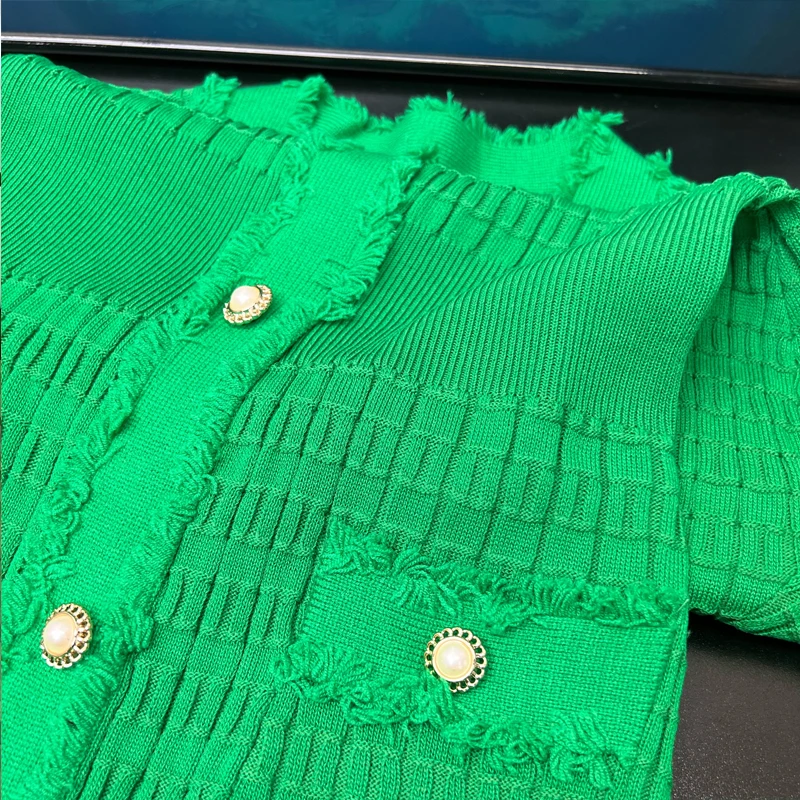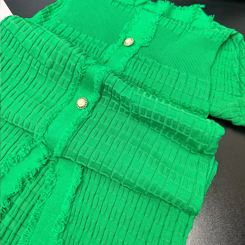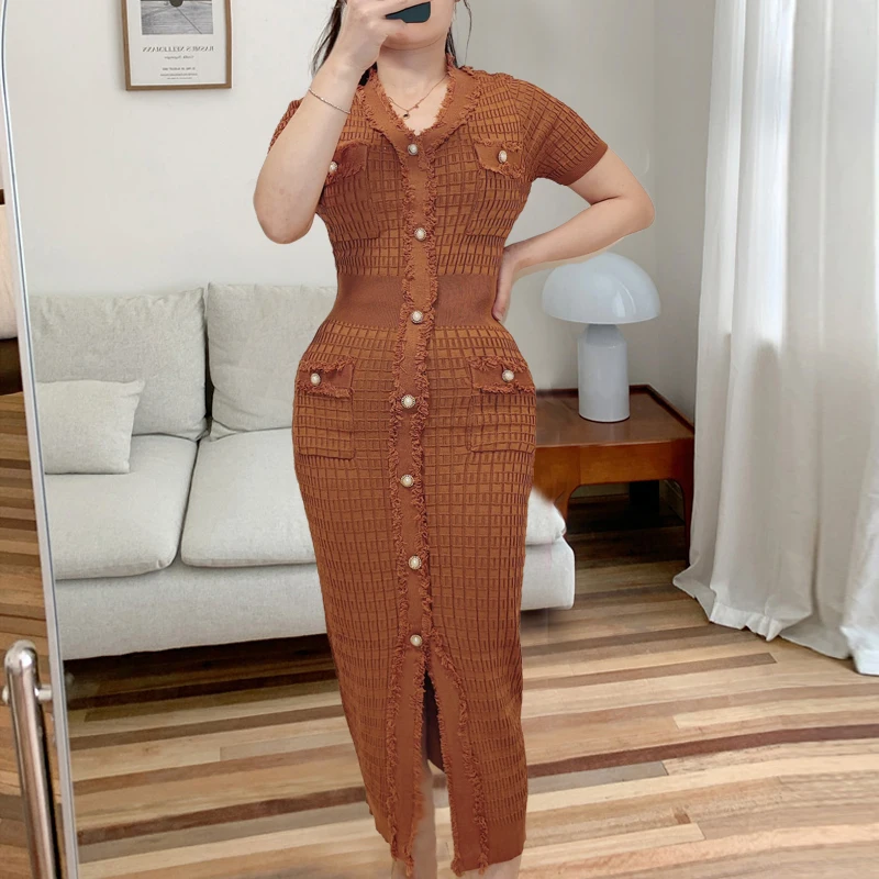 YuooMuoo Chic Fashion Elegant Wrap Hips Knitted Dress Women Brand Fashion Pearls Single-breasted Bodycon Office Lady Vestidos