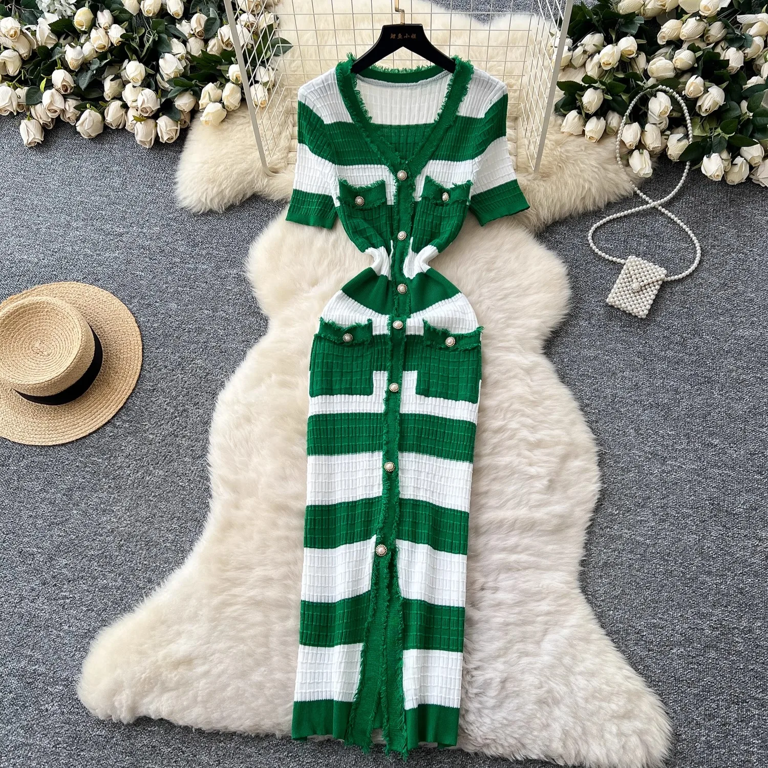 YuooMuoo Chic Fashion Sexy Package Hips Knitted Long Dress 2025 Spring and Summer Elegant Slim Waist Office Lady Sweater Dress