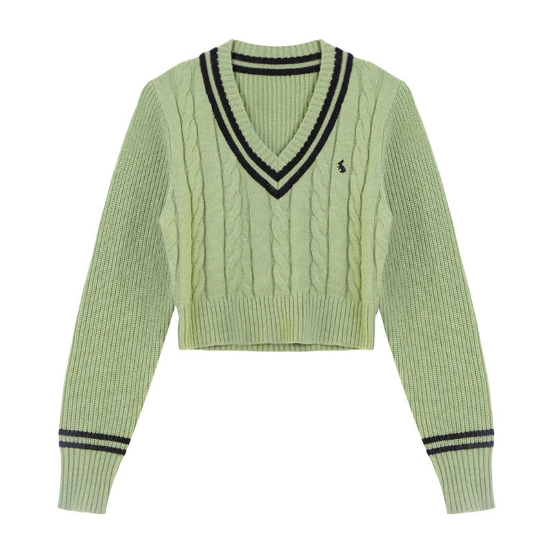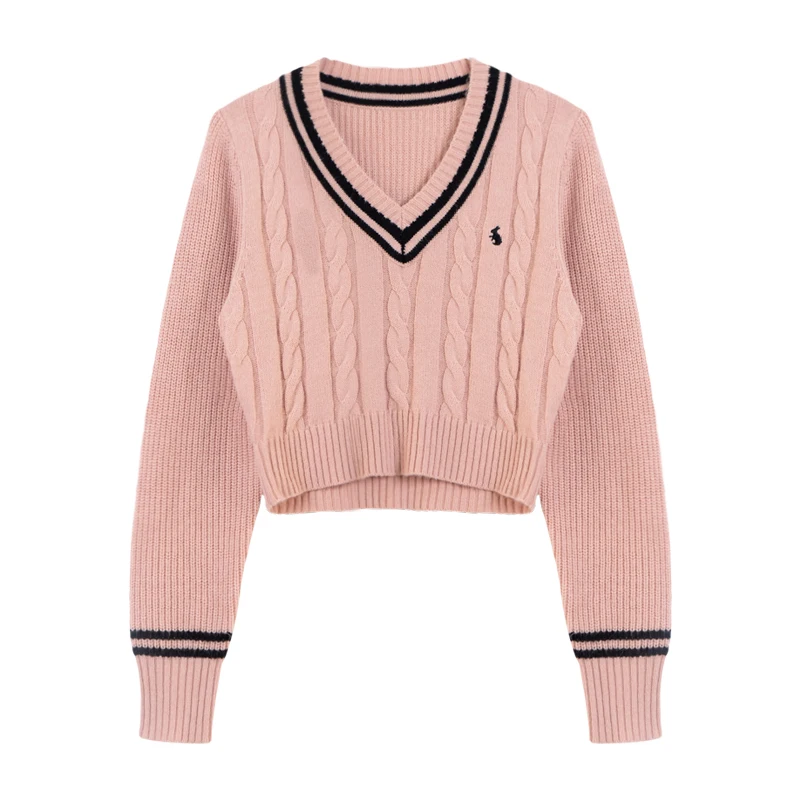 YuooMuoo Korean Fashion Sweaters Women Autumn V-neck Y2K Cartoon Embroidery Knitted Tops Winter Soft Basic Long Sleeve Pullovers