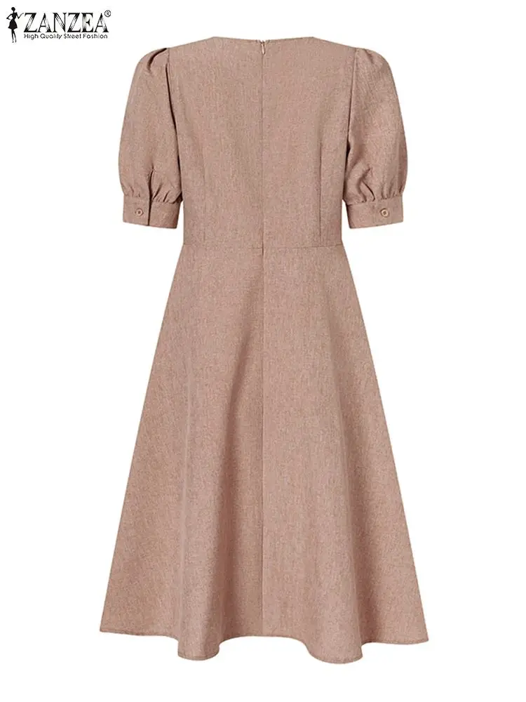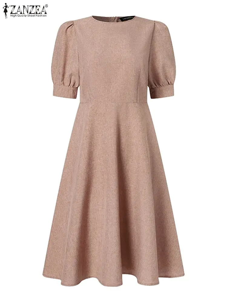 ZANZEA Elegant Summer Office Work Dress Women Half Sleeve Slim A-line Vestidos Fashion Solid Knee-length Sundress Robe Femme