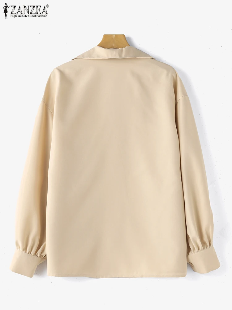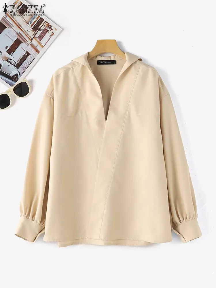 ZANZEA Fashion Lapel V Neck Shirt Women Puff 3/4 Sleeve Blouse Office Casual Loose Solid Color Tops 2024 Summer Street Tunics