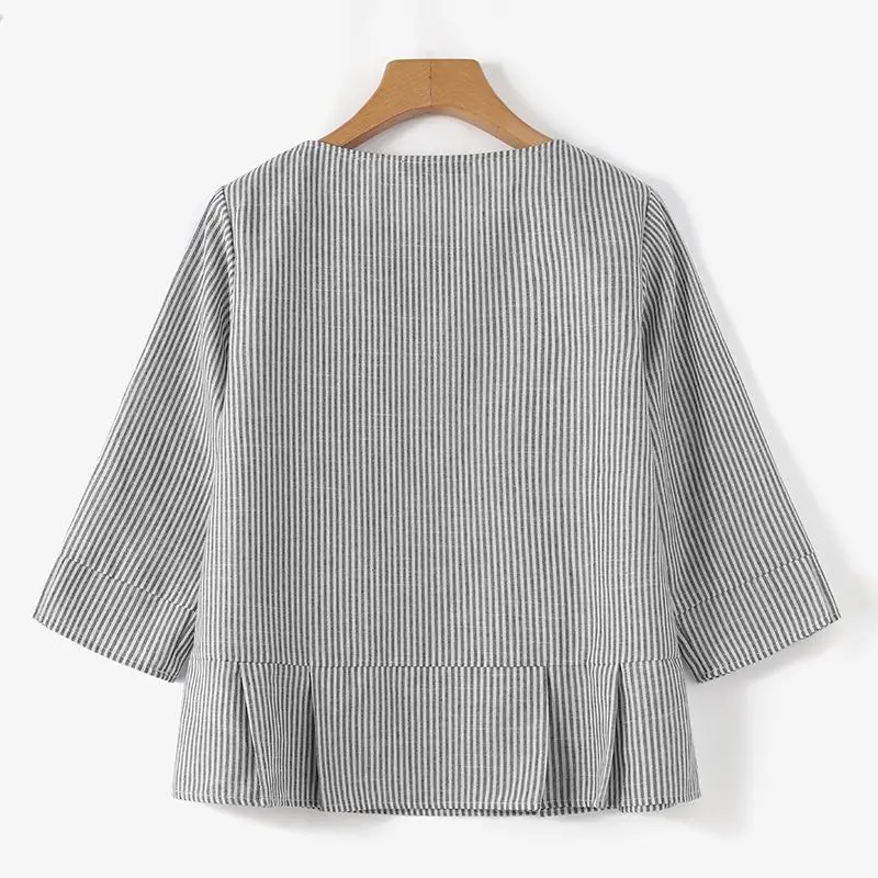 | Package included:1 Blouse Material:20% Polyester+80% Cotton Colors:Black,Gray,Dark Blue Sleeve Length:Three Quarter Sleeve Neckline:O-Neck Pattern:Stripe Printed Thickness:Thin Style:Leisure,Bohemian,Retro,Europe Season:Spring,Summer,Autumn Occasion:Family,Party,Beach,Wedding,Holiday,Employment Label: Yes Attentions: 1.The Real Object May Exist Slightly Colors Differences Compared To Images As Different Computers Display.Caution If Minding,Thanks. 2.There Might Be A Manual Measuring 1-3 cm Error.Sorry For Any Inconvenience. 3.Please Prevail On Real Item, Model Images For Reference Only. 4.Attention!!!Please check the size chart carefully before placing the order.