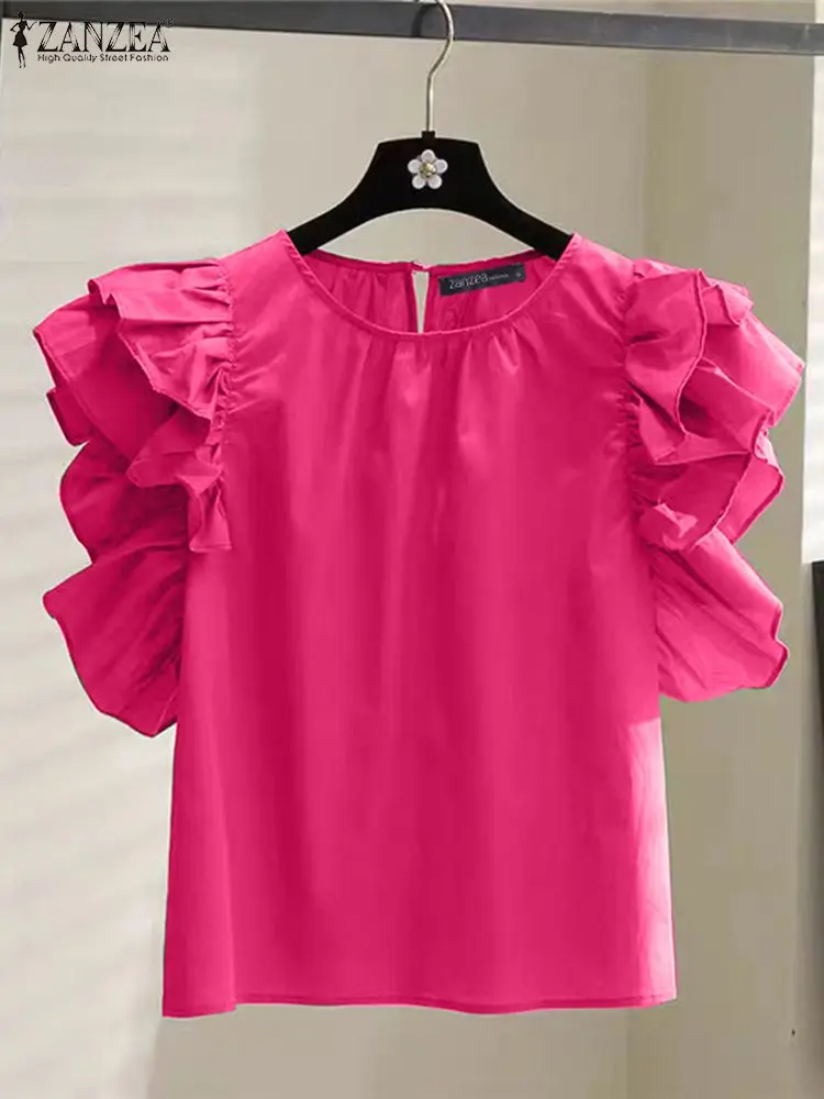 ZANZEA Women Summer Blouse Korean Fashion Ruffle Sleeveless Tank Tops 2024 Summer Casual Pleated Tunic Chic Loose Ruffle Blusas