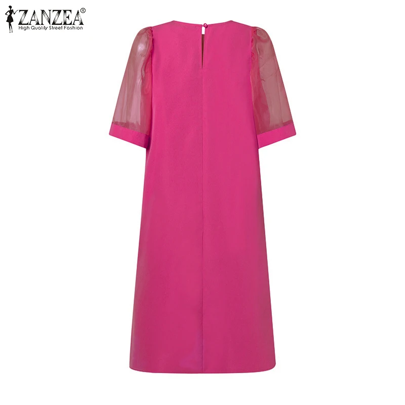 ZANZEA Women Vintage Vestidos Solid Mesh Patchwork Sundress Casual Summer Mini Dress Party Ruffle Short Sleeve Loose Dresses