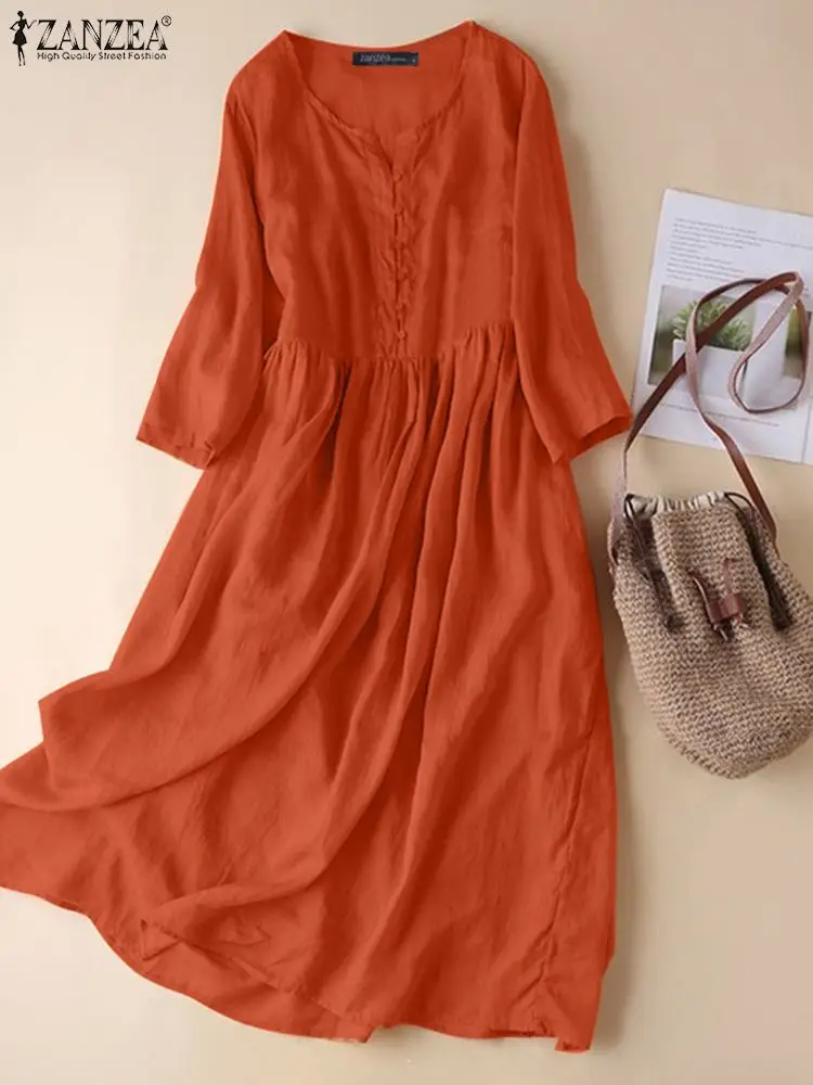 Material:100% Cotton Colors:White,Navy,Orange Package include:1 Dress Cutting:Regular Stretch:Not Stretchable Length:Mid-Calf Length Collar:Round Neck Sleeve Style:Regular Sleeve Sleeve Length:Long Sleeve Closure Type:Buttons Decoration:Pleated Features:Side Pockets Pattern:Solid Thickness:Standard Style:Casual,Commute,Vintage,Elegant,Street Fashion,Preppy Season:Spring,Autumn Occasion:Daily,Office,Holiday,Home,Casual,Travel Label: Yes Attention: 1. Due to different computers, there may be subtle color difference between the object and the image. Please don’t shoot if you mind. Thank you. 2. There may be manual measurement error of 1-3cm. Please understand the inconvenience. 3. Please refer to the real object. The model pictures are for reference only. 4. Attention!!! Please check the size chart carefully before ordering.