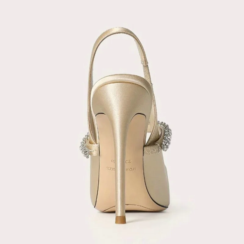 Zapatos Mujer Sandals Women Satin High Heels Wedding Prom Shoes Summer Fashion Silk Diamond Pointed Back Strap Heels