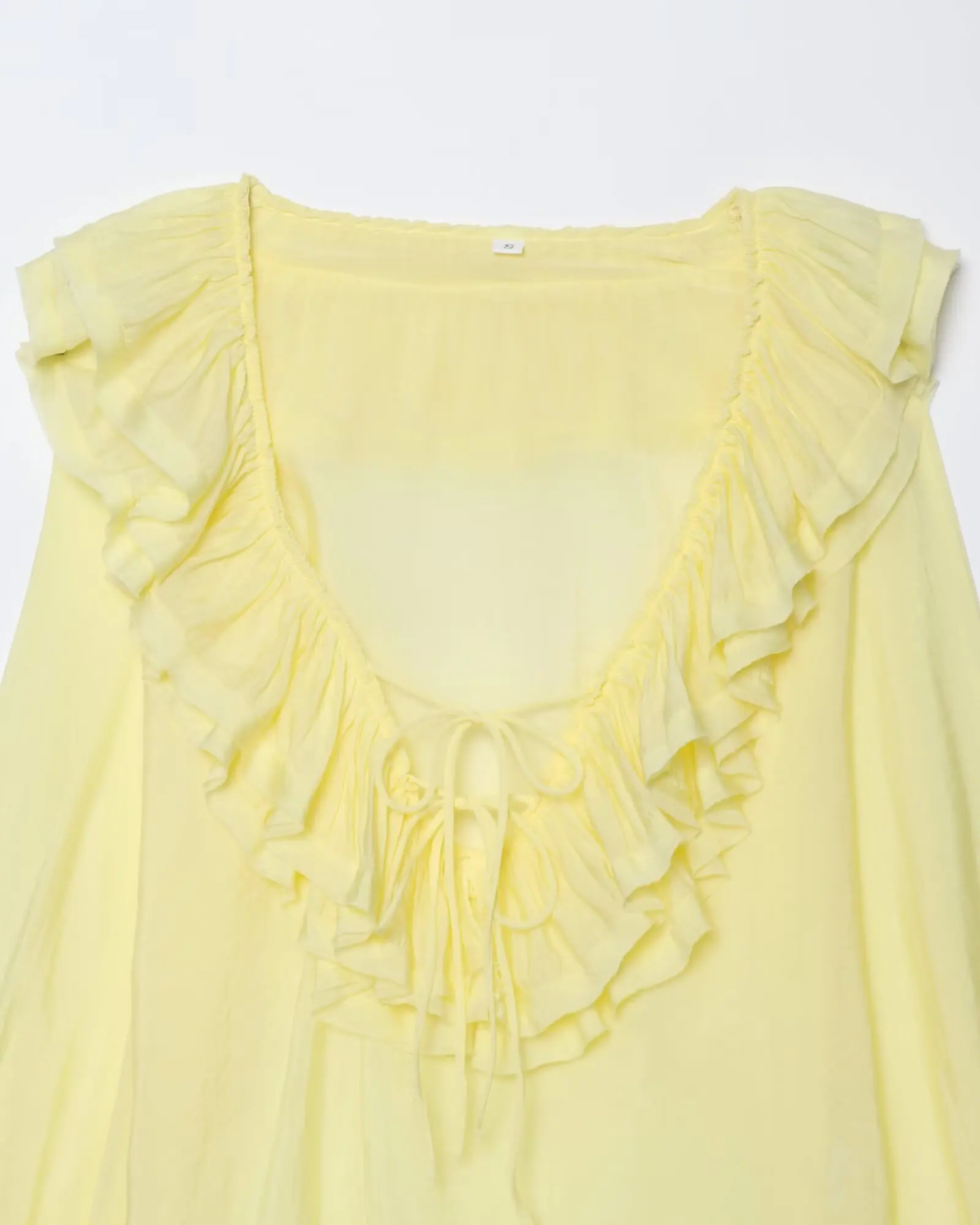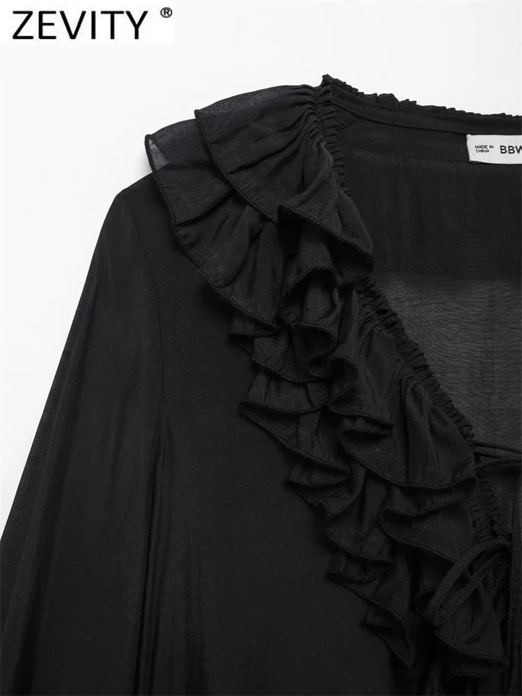 Zevity Women Fashion Long Sleeve V Neck Tierred Ruffles Loose Blouse Female Solid Color Casual Shirts Blusas Chic Tops LS6317