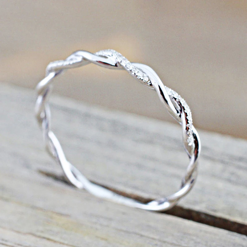 ZHOUYANG Dainty Ring For Women Thin Temperament Winding Wedding Engagement Ring Silver Color Crystal Fashion Gift Jewelry DZR018