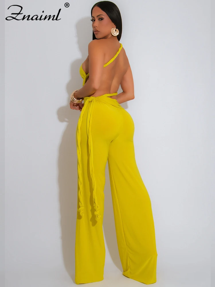 Znaiml Sexy Night Club Strapless One Pieces Rompers Woman Summer Birthday Party Evening Sexy Halter Backless Yellow Jumpsuits