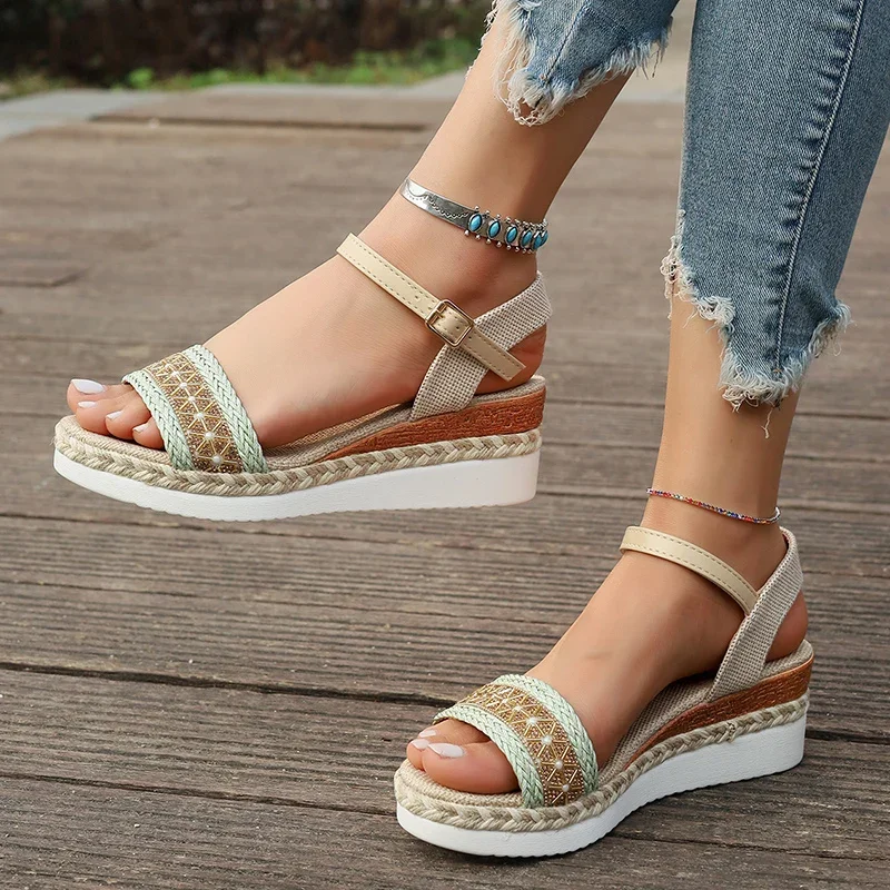 Zoki Plus Size Ankle Buckle Wedge Sandals for Women 2025 Summer Non Slip Beach Shoes Woman Lightweight Platform Sandles Female